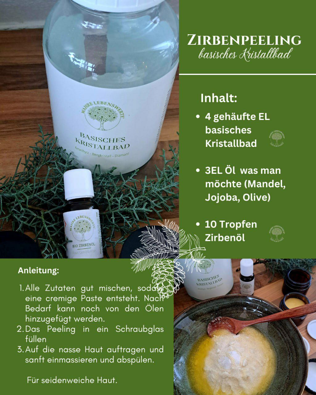 Mit Basischem Kristallbad, pflegenden Ölen und unserem Zirbenöl